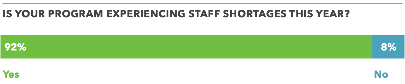 It’s widely known that staffing is one of the most pressing challenges facing the industry that the pandemic has even exacerbated. 92% of districts we surveyed indicated their program was experiencing staff shortages.