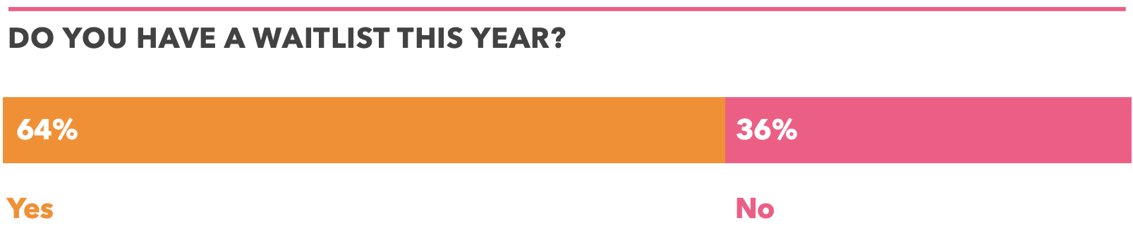 With staff shortages, it wasn’t surprising that 64% of survey respondents indicated having a waitlist this year for programs. However, in an encouraging sign for slowly increasing staff, we heard from many programs that their waitlists were going down as the fall went on, and their program could open more sites. Across our survey respondents, the average waitlist size was 134 students.