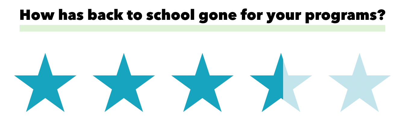 Seventy-three percent of school districts have students in the classroom either part-time or full-time. As a result, we're seeing a large majority of programs, 70 percent, are offering some version of in-person child care. The scheduling and programming challenge continues as schools look further ahead in the school year.